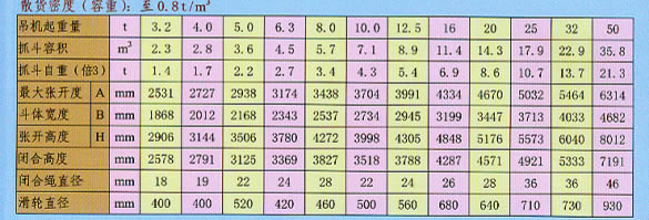 雙索雙瓣抓斗抓取比重為0.4-3.2t/m3各種粒度均勻的散貨,通常為糧食、煤炭、水泥、黃砂石子、礦粉、礦石、鹽等。抓斗容積有0.5至10立方。